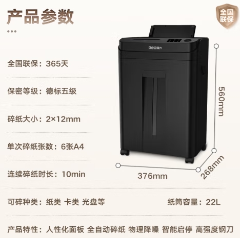 得力/deli deli33679 碎紙機(jī) 五級保密 全自動智能 人性化面板 deli33679